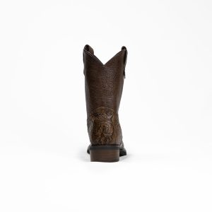 Este modelo combina contraste y carácter en un diseño pensado para acompañar cada movimiento. La chinela en Flor Gravado Moka aporta personalidad, mientras que el tubo en piel Bufalo Brass mantiene una línea equilibrada y resistente.